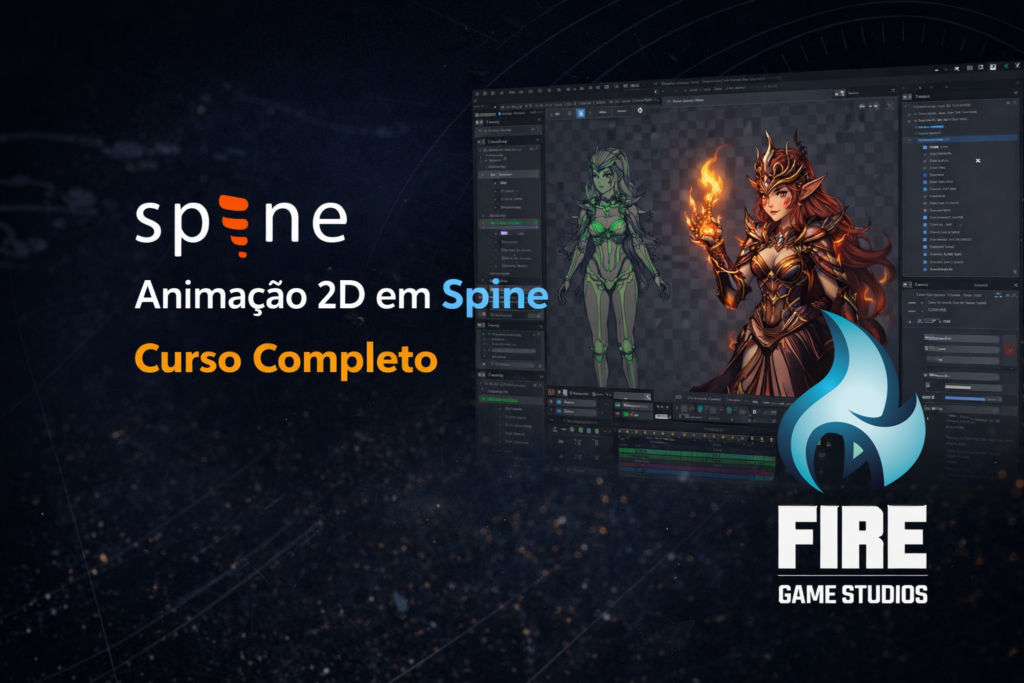 O Curso de Animação 2D em Spine da Fire Game Studios é uma formação completa focada na criação de animações profissionais para jogos, utilizando o Spine como ferramenta principal. O curso começa pelos fundamentos do software, apresentando a interface, organização de projetos, importação de artes, conceitos de hierarquia, bones, slots e skins, preparando o aluno para trabalhar de forma organizada e eficiente.