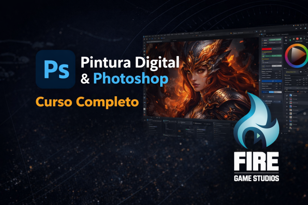 O Curso de Pintura Digital e Photoshop da Fire Game Studios é uma formação completa voltada para a criação de arte profissional para jogos, conceitos visuais e ilustração digital.